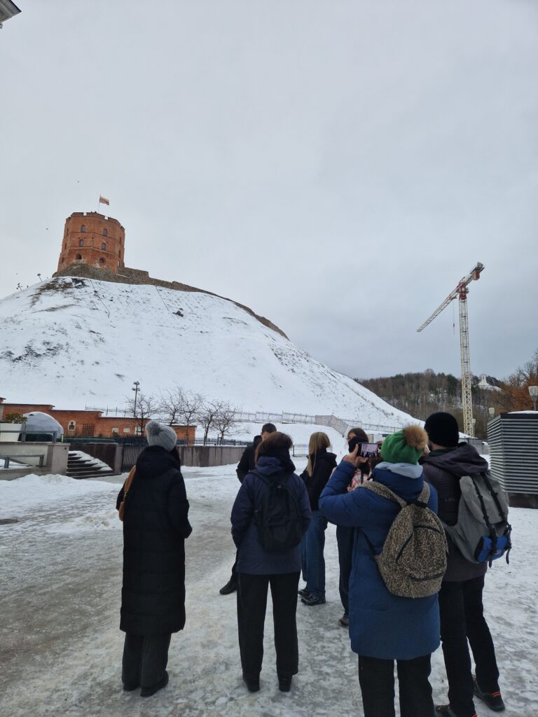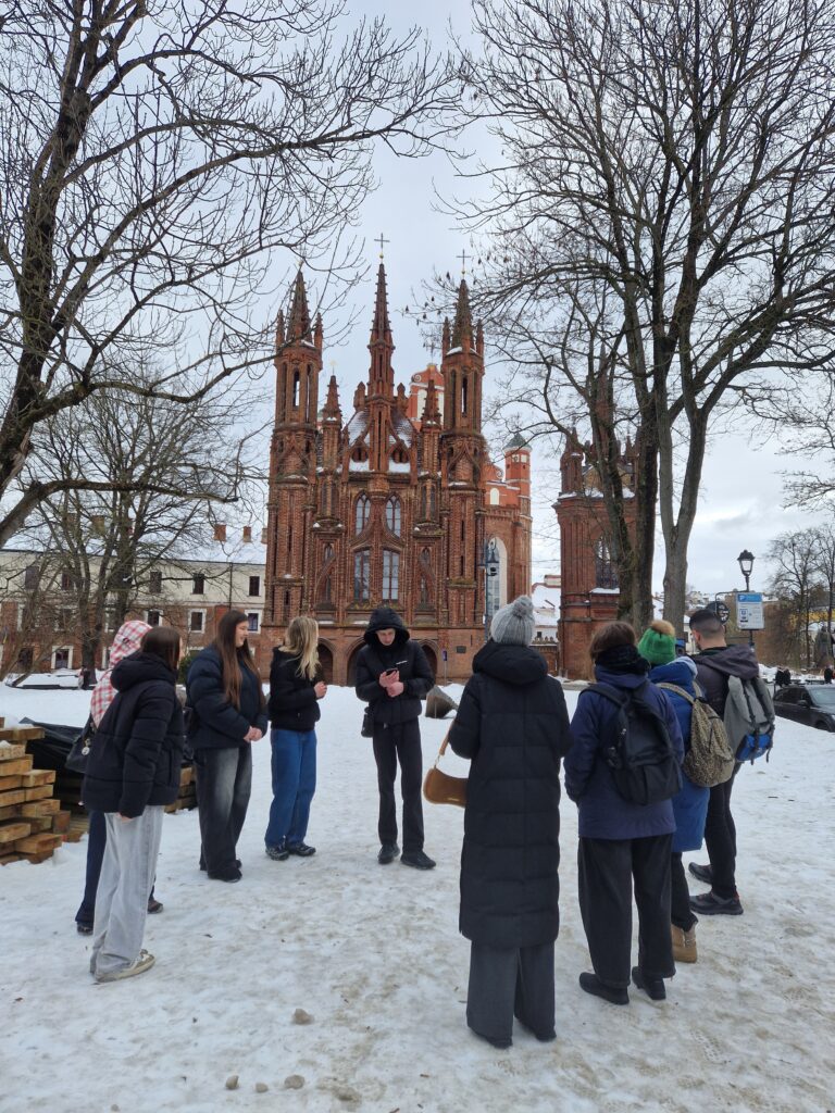 The group visited some of the city’s most significant landmarks, including Vilnius Cathedral and the Chapel of Saint Casimir ⛪, the iconic Gediminas Castle Tower 🏰, the historic streets of the Old Town 🏘️, the remarkable St. Anne’s Church ⛪, Literatų Street 📜, and Vilnius University 🎓, one of the oldest universities in Eastern Europe.